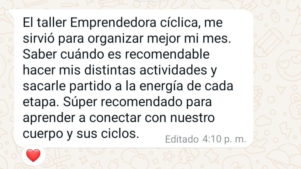 En el taller de Emprendedoras Cíclicas logré conectar con la información que ya sentía hace tiempo, pero no sabía cómo aterrizarla concretamente.