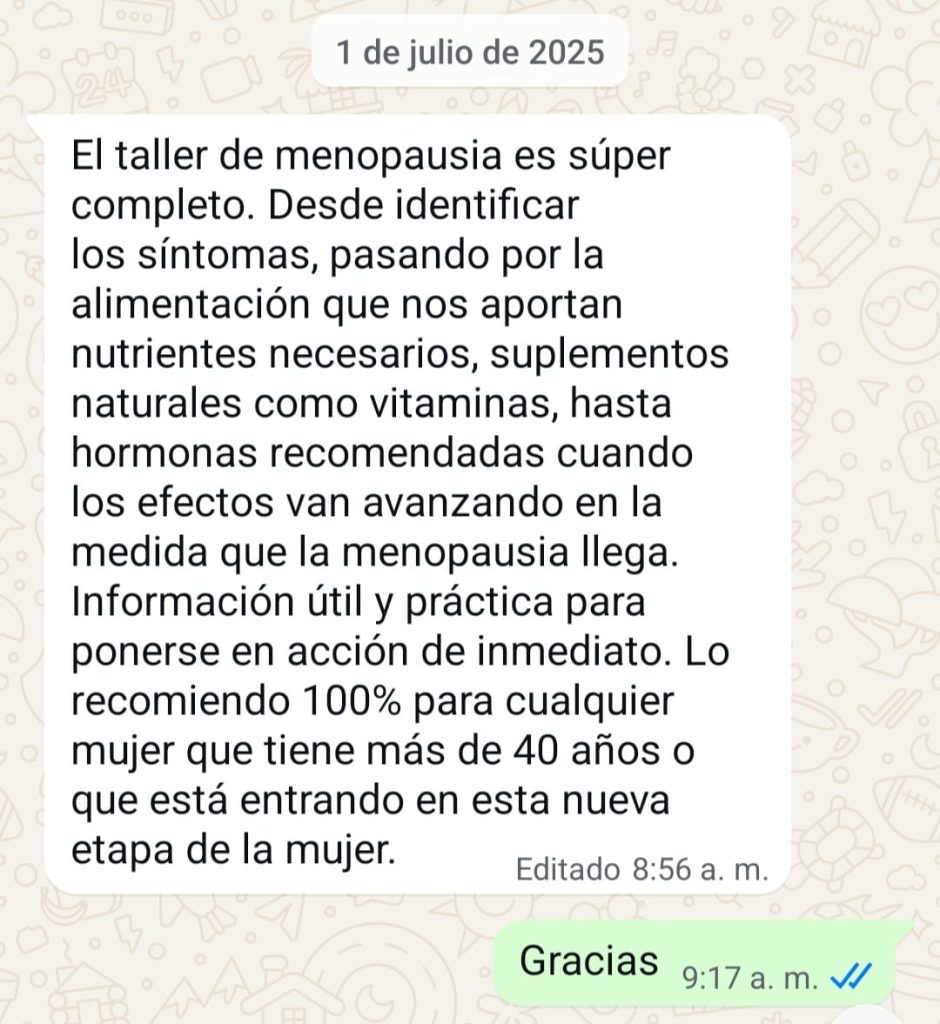 Vive tu perimenopausia y post menopausia con conocimiento, acompañada y con herramientas prácticas.